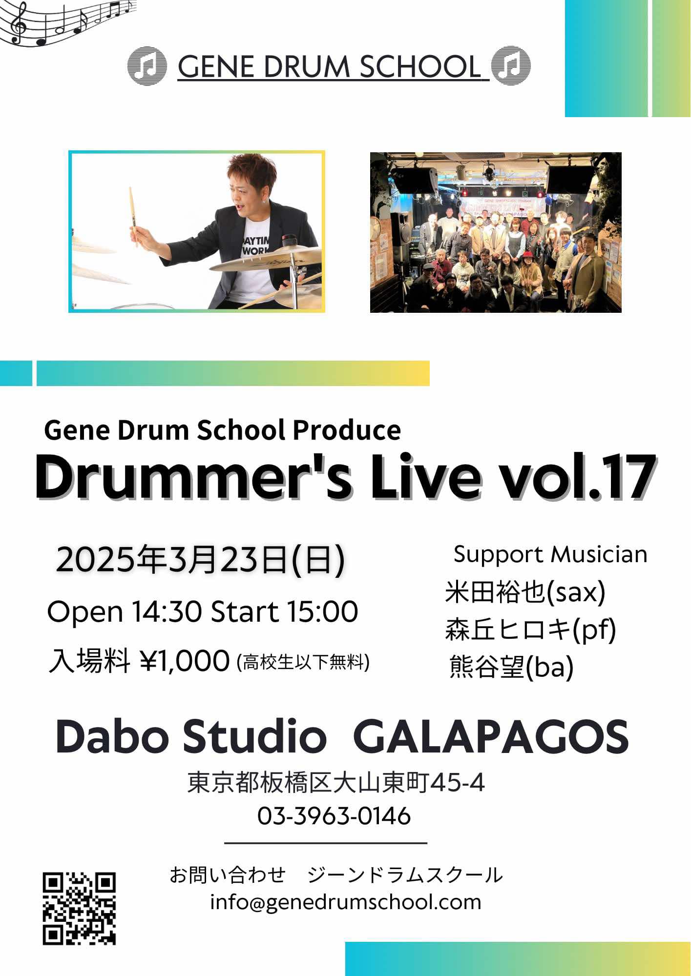 年に一度プロミュージシャンをサポートに迎え『Drummer's LIVE』を行っています。